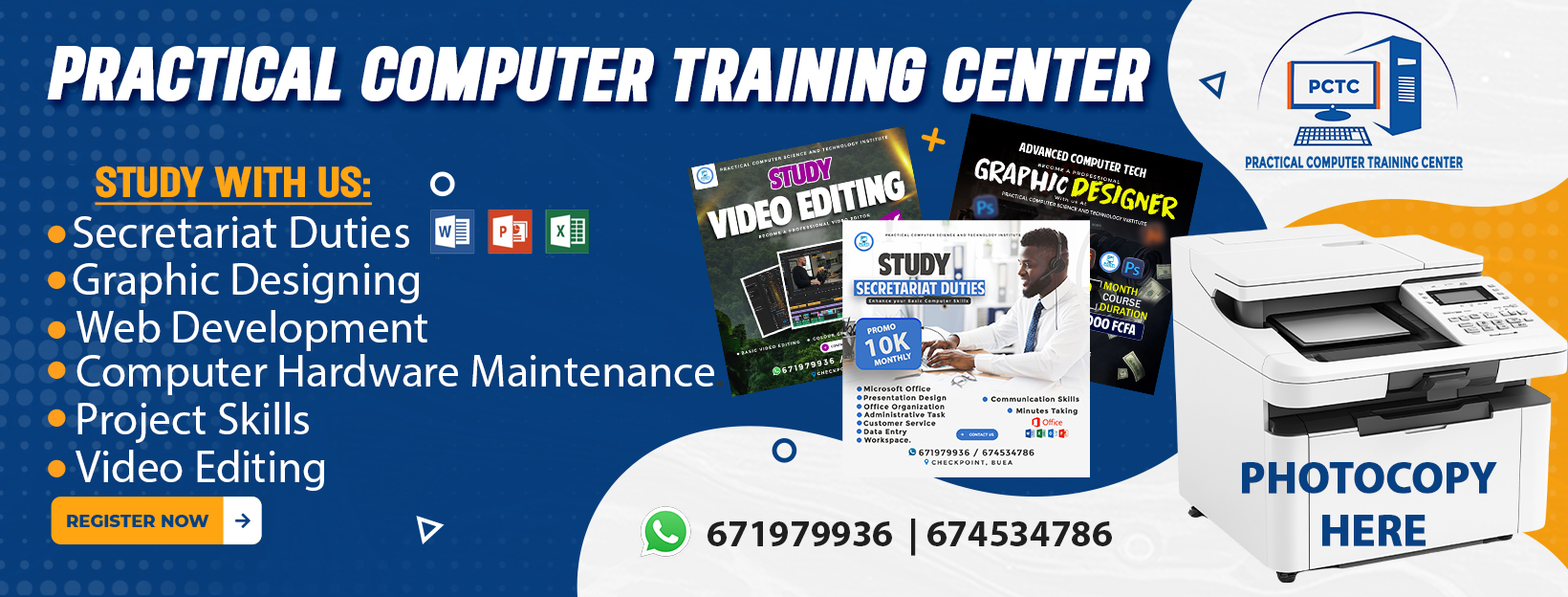 PCTC (Practical Computer Training Center) is a digital skills institute based in Buea, Cameroon. We specialize in hands-on training for various digital and administrative programs to empower students with real-world skills and opportunities for monetization.